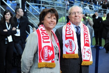Martine Aubry et son père Jacques Delors lors de la finale de la coupe de France PSG (Paris Saint-Germain) / Lille à Saint-Denis