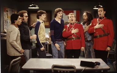 Film Stills from "That 70's Show" Season 3, Episode 23: 'Canadian Road Trip' Wilmer Valderrama, Danny Masterson, Topher Grace, Ashton Kutcher, Dave Thomas, Tommy Chong, Joe Flaherty May 8, 2001