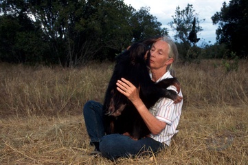 Jane Goodall Personality Jane Goodall with orphaned Chimpanzee Pan troglodytes