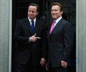 Premier David Cameron i gubernator Kalifornii Arnold Schwarzenegger podczas spotkania w Londynie