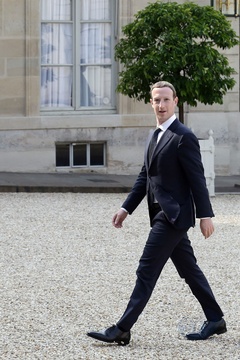 Mark Zuckerberg, PDG de Facebook, arrive au palais de l'Elysée pour le sommet "Tech for Good" à Paris