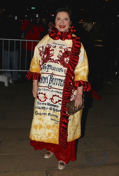 Isabella Rosselini w przykuwajacym wzrok plaszczu na Dolce & Gabbana Alta Moda 2018 collection