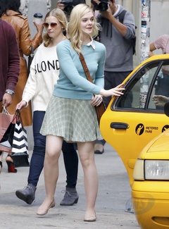 Selena Gomez w kurtce przecideszczowej na planie filmu W. Allena