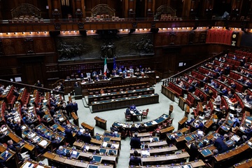 Montecitorio illuminated in orange to mark the International Day for the Elimination of Violence against Women.