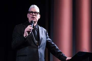 Mark Kermode, James Griffiths, Tim Key, Brett Goldstein, Joachim Trier, Imogen Poots, William Bridges and Meera Syal backstage before Mark Kermode in 3D on Monday 15 December 2025