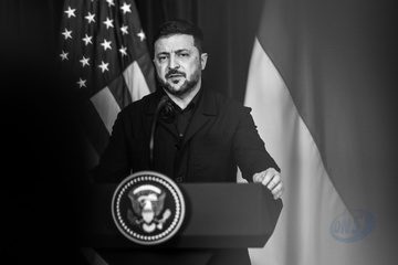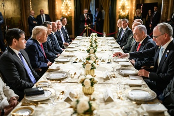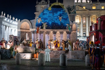 Pope Leo XIV delivers his blessing as he recites the Angelus noon prayer from the window of his studio overlooking St. Peter's Square in Vatican City, Vatican, on 01 January 2026.