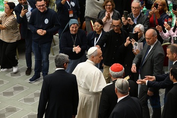 Audience of Pope Leo XIV with representatives from the film industry at the Apostolic Palace in Vatican City, Vatican, on 15 November 2025.