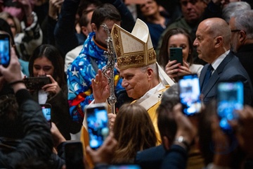 Pope Leo XIV celebrates his first public Mass of 2026 on the Solemnity of Mary, Mother of God, in St. Peter's Basilica in Vatican City, Vatican on 01 January 2026.