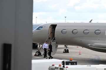 Kim Kardashian przybywa na lotnisko Le Bourget pod bardzo zaostrzonym nadzorem dzień przed rozprawą w procesie „dziadków-złodziei” Kim Kardashian na Rue Tronchet w Paryżu