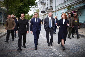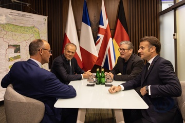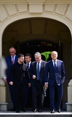 Déplacement d'Emmanuel Macron, Friedrich Merz, Keir Starmer, Donald Tusk et Voloydmyr Zelensky pour participer à la conférence de la Coalition des Volontaires à Kiev