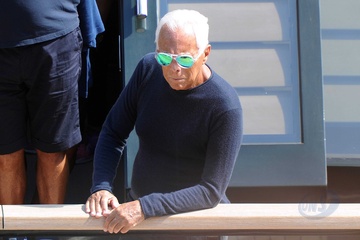 CODE: POLY FOTOTRE PORTOFINO - 07/09/2014 FASHION DESIGNER GIORGIO ARMANI ON HIS YACHT MAIN IN PORTOFINO. GIORGIO HAS LUNCH WITH HIS FRIEND PUNY