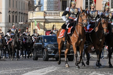 Pope Leo XIV arrives at the Quirinale Palace for a meeting with the President of the Republic. Rome, Italy October 14, 2025