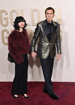 Nicolas Cage and Riko Shibata - Golden Globe Awards 2024 - Arrivals (Nicolas Cage and Riko Shibata)