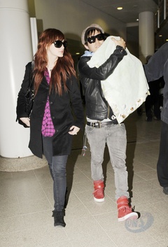 Ashlee Simpson i Pete Wentz z dzieckiem na lotnisku, Manchester