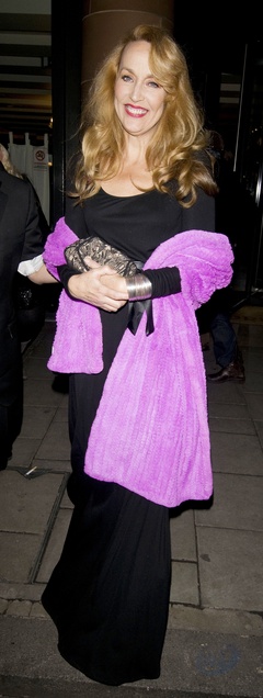 Jerry Hall wychodzi z restauracji Cipriani w Londynie