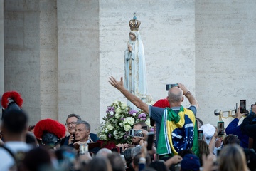 Pope Leo XIV presides over a Rosary vigil for peace in St. Peter's Square in Vatican City, Vatican, on 11 October 2025.