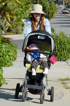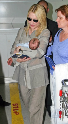 Kate Blanchett z noworodkiem opuszczaja port lotniczy w Nicei