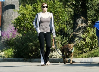Jessica Biel z psem na spacerze, Brentwood