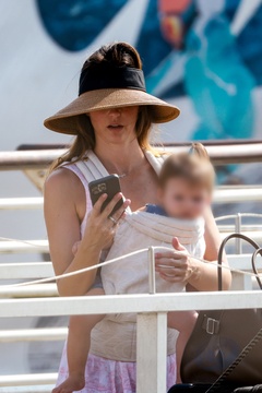 Annabelle Belmondo wraz z synem Angelo opuszczają Wenecję po wzięciu udziału w 81. Międzynarodowym Festiwalu Filmowym w Wenecji w Mostrze