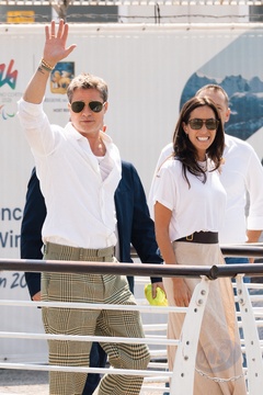 Adrien Brody i jego partnerka Georgina Chapman po przybyciu na lotnisko w Wenecji podczas 81. Międzynarodowego Festiwalu Filmowego w Wenecji, Mostra.