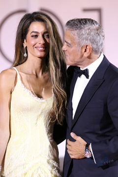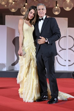 Amal Clooney i George Clooney na czerwonym dywanie filmu „Wilki” podczas 81. Międzynarodowego Festiwalu Filmowego w Wenecji
