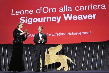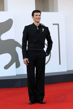 Arthur Conti na czerwonym dywanie, gdzie wyświetlany był film „Sok z żuka” podczas wieczoru otwarcia 81. Międzynarodowego Festiwalu Filmowego w Wenecji