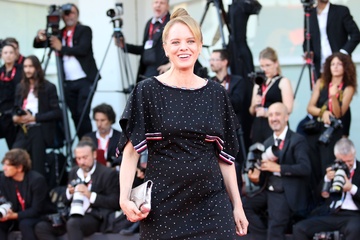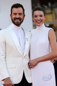 Justin Theroux i Nicole Brydon Bloom na czerwonym dywanie filmu „Sok z żuka” podczas wieczoru otwarcia 81. Międzynarodowego Festiwalu Filmowego w Wenecji