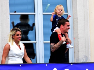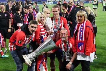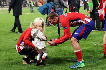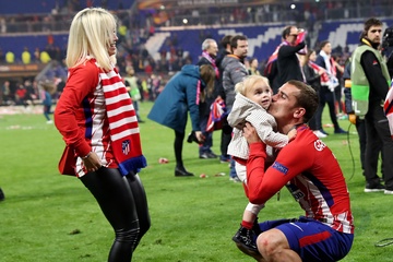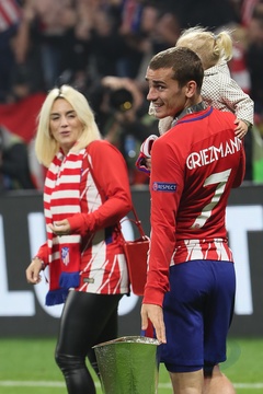Antoine Griezmann en famille après la finale de la Ligue Europa au stade Groupama à Lyon