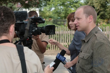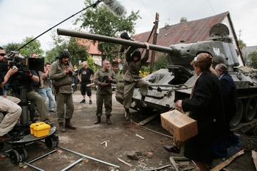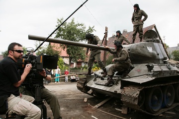 Na planie filmu Operacja Dunaj w rezyserii Jacka Glomba