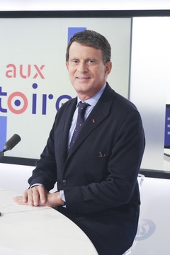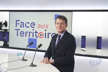 Exclusif - Manuel Valls sur le plateau de l’émission "Face aux territoires" présentée par C.Viguier dans les studios de TV5 Monde à Paris
