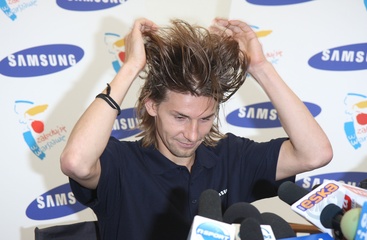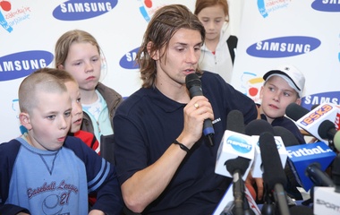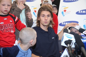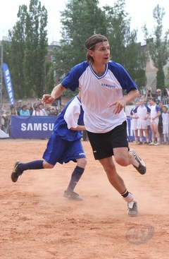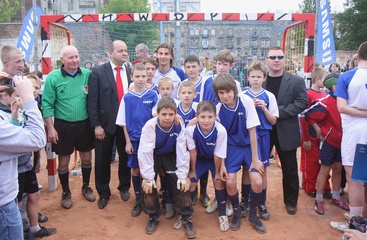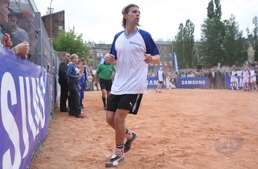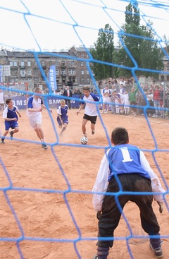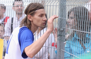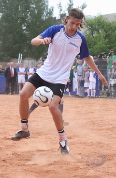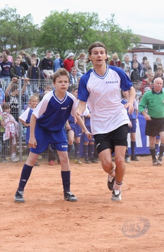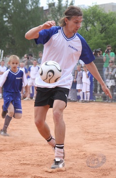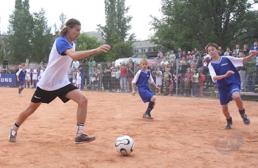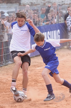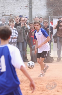 Ebi Smolarek w pokazowym meczu z dziecmi na warszawskiej Pradze, Warszawa 2008
