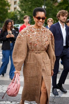 Street Style at Milan Fashion Week 2025 - Fendi in Milan, Italy on 24 September 2025.