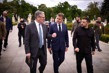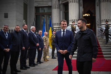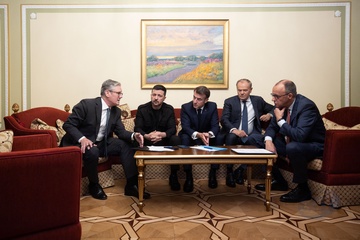 Déplacement d'Emmanuel Macron, Friedrich Merz, Keir Starmer, Donald Tusk et Voloydmyr Zelensky pour participer à la conférence de la Coalition des Volontaires à Kiev 82