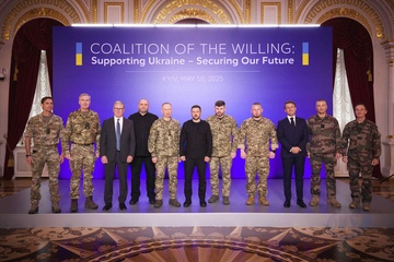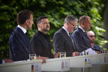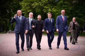 Déplacement d'Emmanuel Macron, Friedrich Merz, Keir Starmer, Donald Tusk et Voloydmyr Zelensky pour participer à la conférence de la Coalition des Volontaires à Kiev