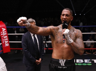 Combat de boxe entre Tony Yoka et Arslan Yallyev à l'Adidas Arena à Paris