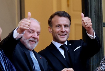 Prezydent Emmanuel Macron i jego żona Brigitte Macron witają prezydenta Brazylii i jego żonę na oficjalnej kolacji w Pałacu Elizejskim w Paryżu 64