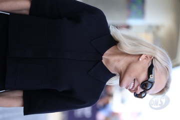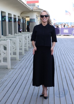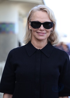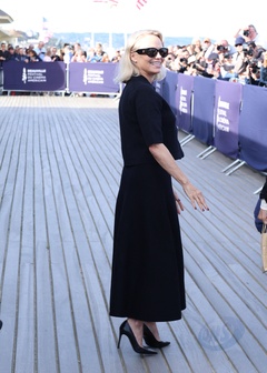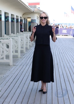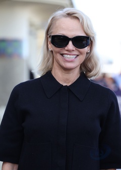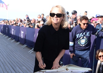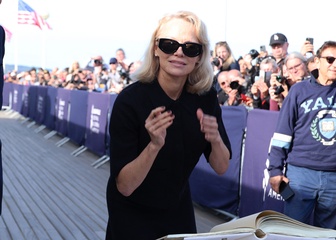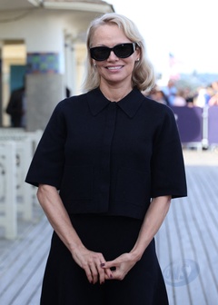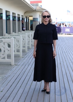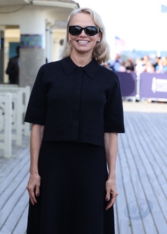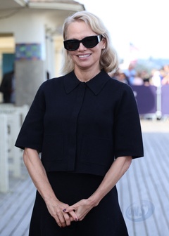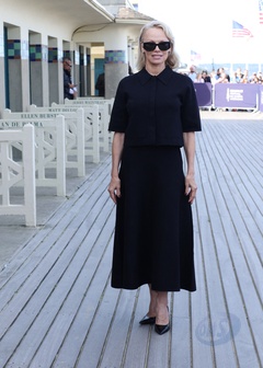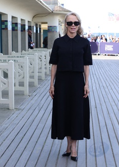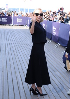 Pamela Anderson otwiera swoją kabinę na scenie w Deauville podczas 51. Deauville American Film Festival
