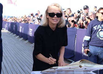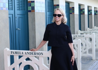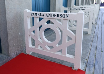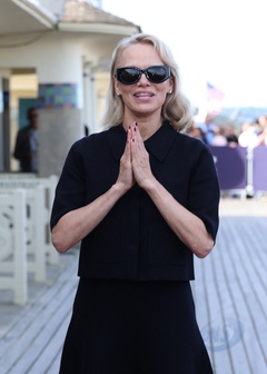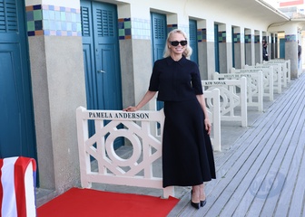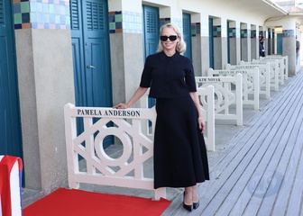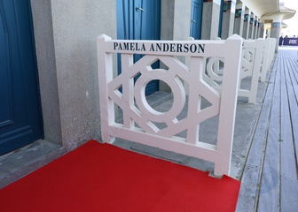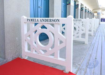 Pamela Anderson inaugure sa cabine sur les planches de Deauville lors du 51éme Festival du Cinema Américain de Deauville