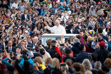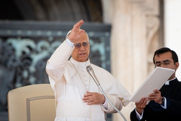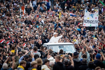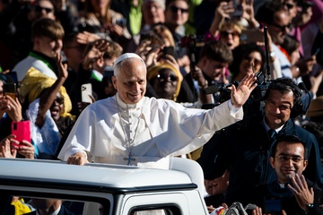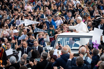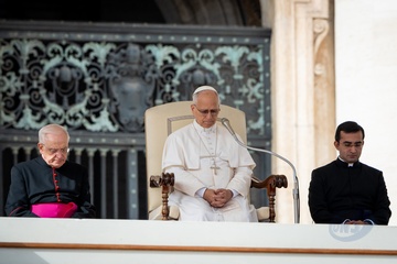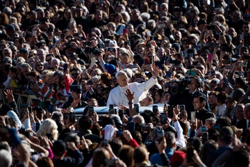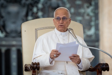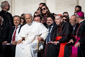 Pope Leo XIV leads his traditional Wednesday General Audience in St. Peter's Square in Vatican City, Vatican, on 28 October 2025.