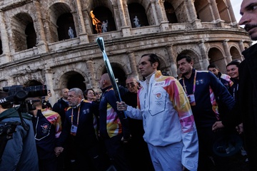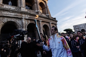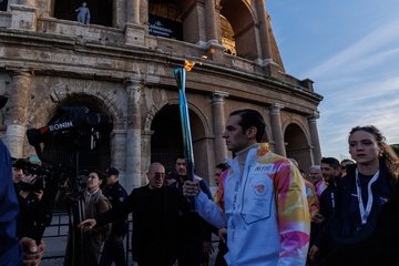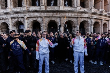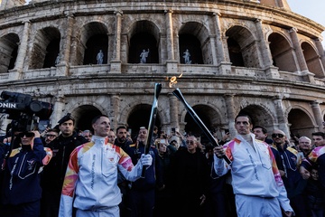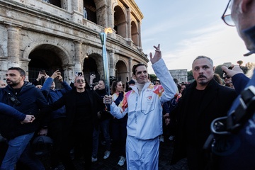 The Olympic Torch departs Rome for the 2026 Milan-Cortina Winter Olympics.