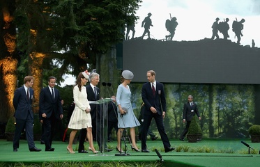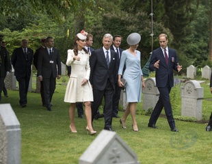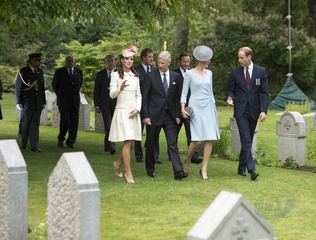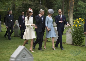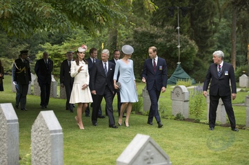 Ksiezna Kate, ksiaze William i ksiaze Harry zlozyli kwiaty poleglym zolnierzom na Cmentarzu Wojskowym pod Mons, Belgia