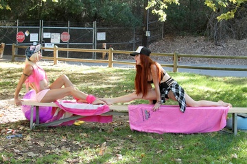 Phoebe Price i Frenchy Morgan podczas gimnastyki