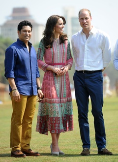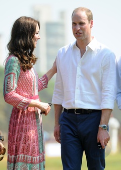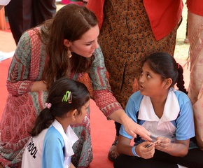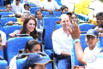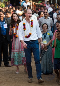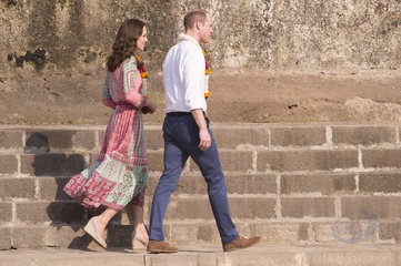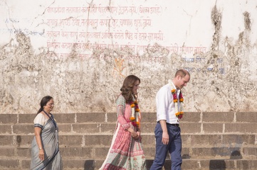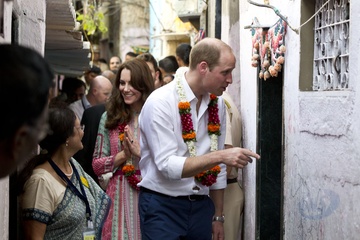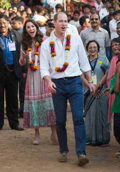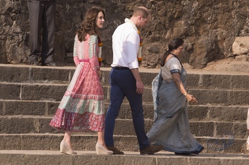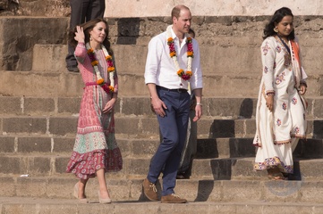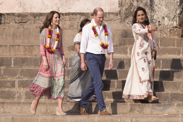 Ksiaze William i Ksiezna Kate w Indiach - tradycyjne powitanie