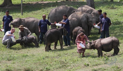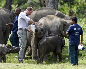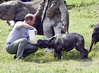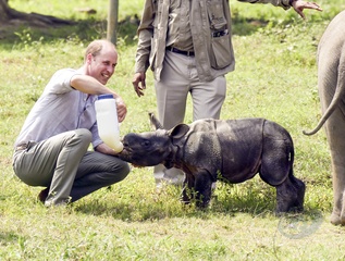 Ksiaze William i ksiezna Kate karmia male nosorozce i slonie - wizyta w Indiach