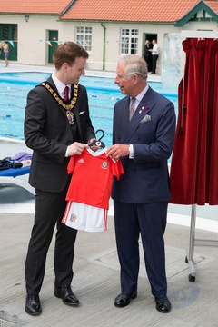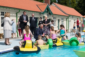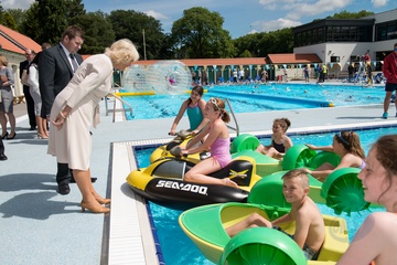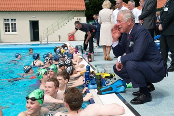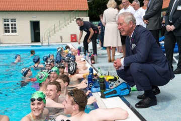 Ksiaze Karol i Camilla na otwarciu basenu Ponty Lido