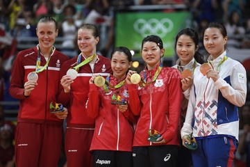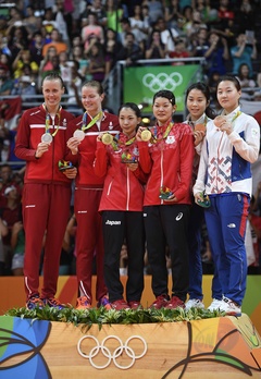 Matsutomo Misaki, Takahashi Ayaka, Christinna Pedersen, Kamilla Juel Rytter, Jung Kyung Eun, Shin Seung Chan