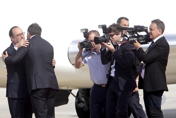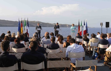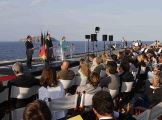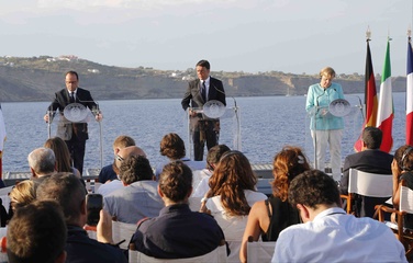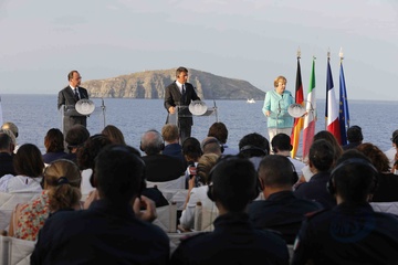 Spotkanie politykow we Wloszech - Premier Wloch, kanclerz Niemiec i prezydent Francji