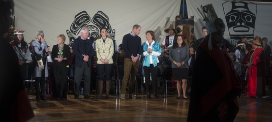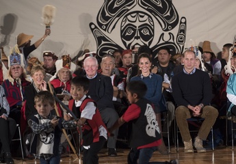 Ksiezna Kate i ksiaze William w Bella Bella First Nations community, Kanada