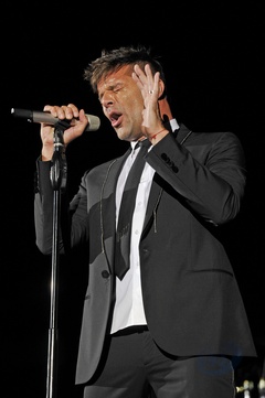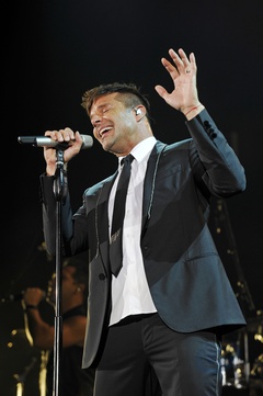 Ricky Martin w garniturze i krawacie na koncercie w Londynie