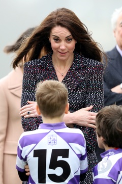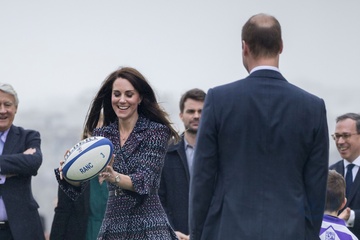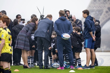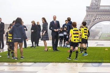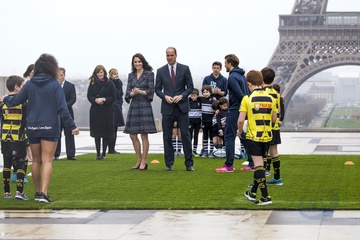 Ksiaze William i Kate spotkali sie z malymi fanami rugby, Paryz